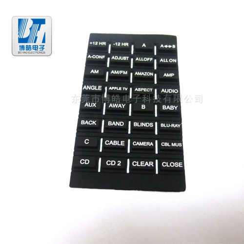 - 該產品適用于儀器設備控制面板按鍵,采用耐用的硅膠原材料,不易撕破,不易斷裂,按鍵手感靈活。按鍵表面采用絲印工藝,圖案文字都可以印制。博皓電子還可以為您開模定制,屬于您自己產品的硅膠按鍵。